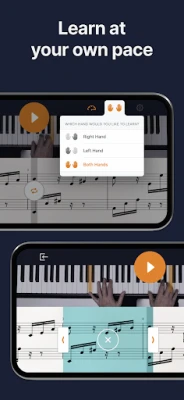 Inti dari pengalaman belajar dengan flowkey terletak pada fitur interaktifnya yang revolusioner, dirancang untuk membuat latihan lebih mudah dan efektif. Mode 'Wait' yang cerdas akan menunggu Anda menekan not dan akor yang benar, memberikan umpan balik instan dan memastikan setiap langkah Anda akurat—baik melalui mikrofon perangkat atau koneksi Bluetooth/MIDI. Anda dapat menyempurnakan bagian-bagian sulit dengan fitur 'Loop', berlatih tangan kanan dan kiri secara terpisah dengan 'Select a Hand', atau mengamati demo profesional melalui 'Video' yang menyoroti penempatan jari dan not yang akan datang. Bagi mereka yang menyukai tradisi, 'Full Sheet Music View' memungkinkan Anda berlatih membaca partitur klasik di mode potret tablet. Semua fitur ini dirancang untuk mempercepat penguasaan Anda dengan cara yang menyenangkan.